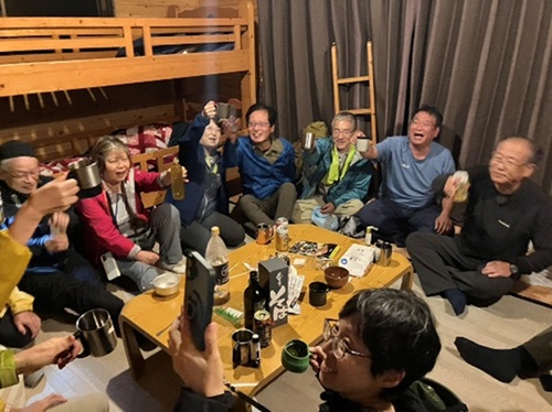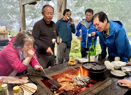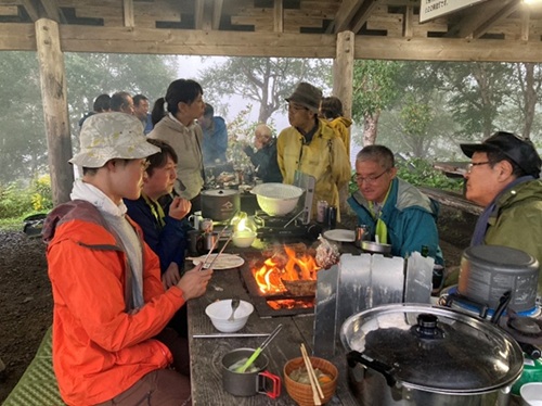 今回のお祭りは、雨のため山行は中止になったが、おいしい食べ物、飲み物は十分楽しむことができた。鹿児島、佐久、前橋から久しぶりの参加もあった。 料理長のAさん、会計のFさんをはじめ、皆様にご協力を得て今年のお祭りを無事終了する事が出来た。