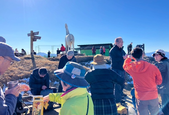 2026年の新年山行は久しぶりの陣馬山。といっても前回の陣馬山は2~3年前で雨の中で御神酒を飲んだ印象がまだ強く残っている。今回は集中形式にして多くの方に参加してもらった。H夫妻やTさんなど久しぶりの方も参加されて、合計17名の大賑わいの新年山行となった。